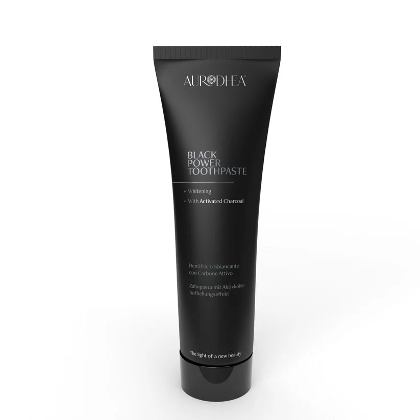 Le dentifrice Black contient du charbon actif, qui élimine les bactéries, éclaircit les taches dentaires et a une action blanchissante grâce à sa formule à base de Charbon actif. Il contient du Pyrophosphate de sodium, une substance capable d'éliminer le Magnésium et le Calcium de la salive, empêchant ainsi leur dépôt sur les dents et la formation consécutive de tartre. Sa formule naturelle, d'origine végétale, sans graisses animales ni alcool, rétablit le pH physiologique et reminéralise les dents. Actif sans être agressif sur les dents et les gencives, il est non abrasif. Il contient de l'huile essentielle de Menthe poivrée, qui assure un goût agréable et une sensation de fraîcheur durable. L'effet blanchissant est perceptible dès les premiers lavages.