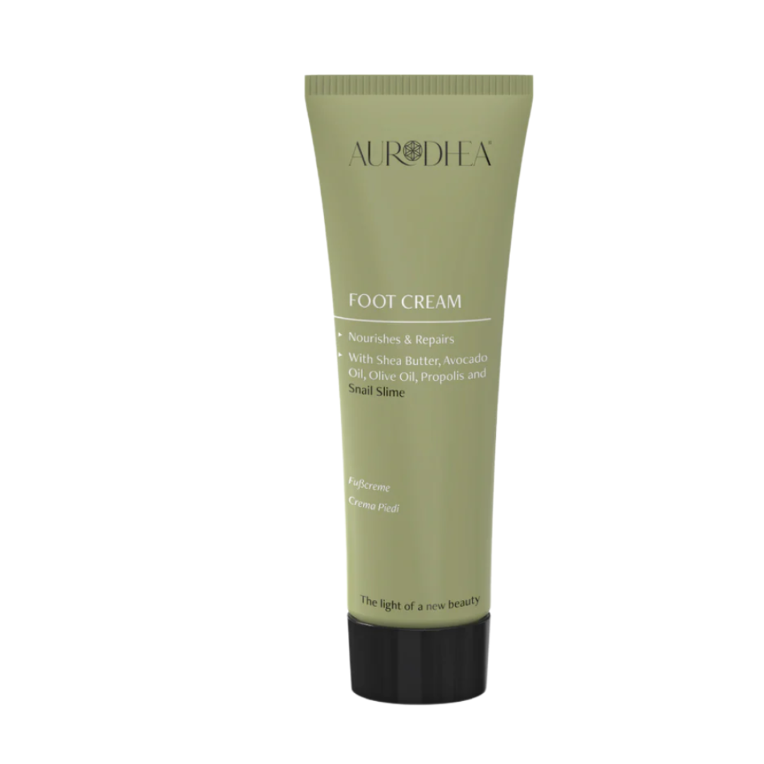 La crème pour les pieds Aurodhea à la bave d'Escargot est un traitement rafraîchissant et émollient pour les pieds fatigués. Son utilisation régulière, grâce aux précieux principes actifs contenus dans la bave d'Escargot et la Propolis, aide à adoucir la peau des pieds et à combattre les imperfections gênantes causées par l'étroitesse des chaussures et les frottements continus (comme les cors et les durillons). Elle exerce une excellente action réparatrice, créant un environnement favorable à la cicatrisation et soulageant les pieds gercés. Enrichie en beurre de Karité, huile d'Amande, huile d'Avocat et huile d'Olive, elle nourrit les pieds en profondeur, les laissant doux et lisses.